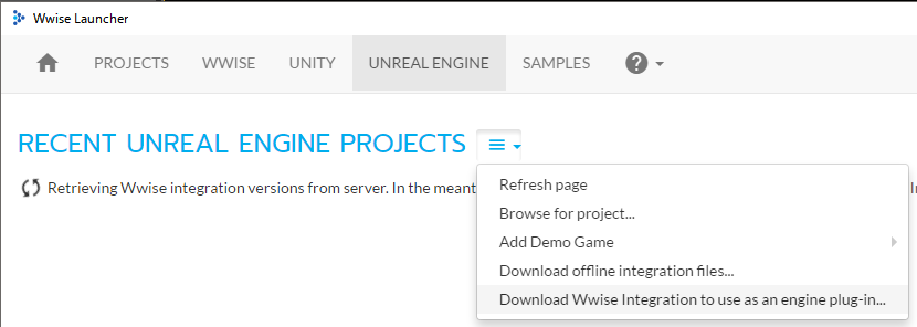 Wwise Unrel Integration | Wwiseのインテグレーションバージョン、これはインターネット先からダウンロードできるバージョンの一覧がでている、基本は最新で |